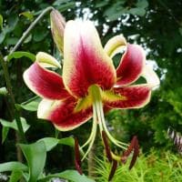 Услышав слово Шахерезада, представляете перед собой удивительную красавицу, рассказывающую персидскому царю сказки? Тогда приготовьтесь удивиться, ведь перед вами истинная королева (правда, голландская, а не персидская) – божественная лилия Шахерезада, относящаяся к группе ОТ-гибрид. Полученная в результате скрещивания восточных и трубчатых лилий, она вобрала в себя всю природную красоту и элегантность. Высота растения – 150-180 см, а размер цветов – 13-15 см! Крупные соцветия, направленные вниз, имеют широко открытые лепестки бордового цвета с желтой серединкой, нежно-персиковой каймой и темным крапом.