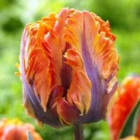 Попугайный тюльпан Оранж Рококо способен за считанные секунды взбудоражить сознание даже самого опытного садовода. При виде его огромных бутонов возникает только одна мысль: «Это не цветок, а просто мечта!» И это на самом деле так, ведь огромные соцветия Оранж Рококо состоят из сильно гофрированных и причудливо изрезанных по краям лепестков. А окрас цветка вообще сложно описать словами. В нем встретились и соединились одновременно теплые оранжево-желто-красные тона и холодные сизо-сиреневые всплески.!!!